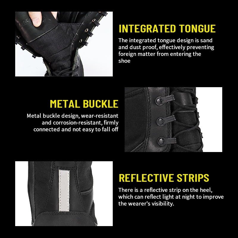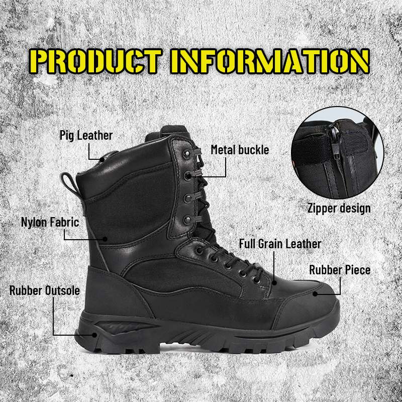 Hanagal Pig Leather Zipper Design Police Boots ovat ammattikäyttöön tarkoitettuja jalkineita, jotka on kehitetty lainvalvonta- ja turvallisuushenkilöstölle, joka vaatii mukavuutta, kestävyyttä ja tehokkuutta pitkien ulkotöiden aikana. Nämä Kiinassa kokeneen tehtaan ja valmistajan valmistamat saappaat on valmistettu korkealaatuisesta siannahasta, joka tarjoaa erinomaisen hengittävyyden ja pehmeyden säilyttäen samalla rakenteellisen lujuuden. Sivuvetoketju mahdollistaa nopean päälle- ja poiskulumisen, mikä parantaa toiminnan tehokkuutta partioiden, koulutuksen ja hätätilanteissa. Käytännön suorituskykyä ja puhdasta, modernia muotiprofiilia yhdistävä Hanagal varmistaa vakaan laadunvalvonnan ja kilpailukykyisen hinnan, mikä tekee näistä poliisisaappaat ihanteellisen valinnan maailmanlaajuisille ostajille, jotka etsivät luotettavaa toimittajaa massahankintaan ja pitkäaikaiseen yhteistyöhön.