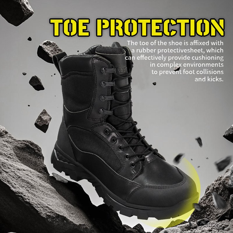 Kengän kärkeen on kiinnitetty kuminen suojakalvo, joka voi tehokkaasti vaimentaa monimutkaisissa ympäristöissä jalkojen törmäyksiä ja potkuja.