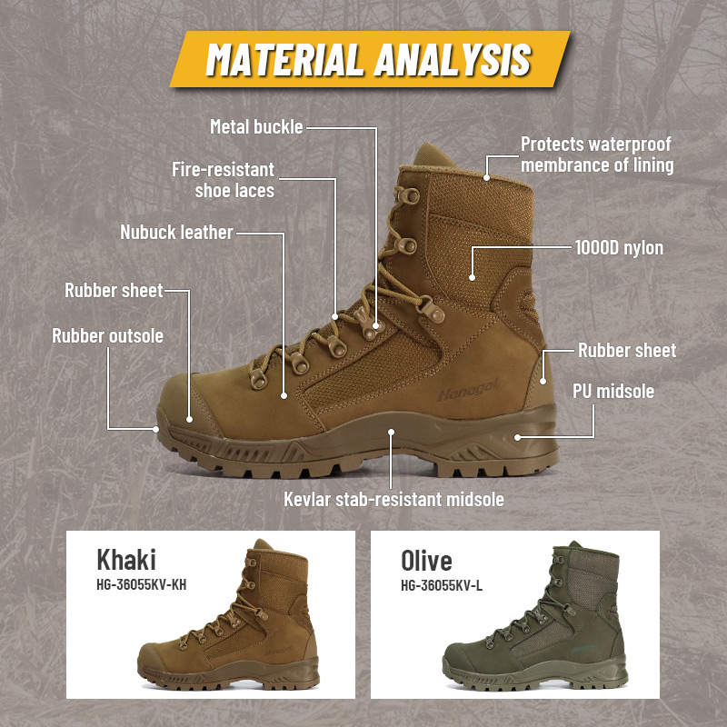 Hanagal PU Rubber Traction Sole Combat Boots -saappaiden suorana toimittajana ja tehtaana tarjoamme kilpailukykyisen hinnan, joustavan räätälöinnin ja tiukan laadunvalvonnan varmistaaksemme, että jokainen pari täyttää kansainväliset standardit. Täydellinen joukkotilauksille, jakelijoille ja taktisille pukeutujille, jotka etsivät luotettavia suorituskengät.