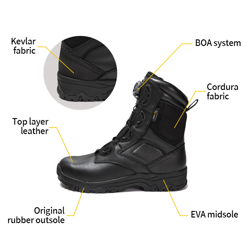 Nämä Quick-on/off System Police Boots -saappaat ovat varastossa ja valmiina lähetettäväksi. Tilaukset alkavat vain 10 parista. Jos haluat lisätietoja tai hintakyselyitä, ota rohkeasti yhteyttä milloin tahansa. Räätälöinti on saatavilla myös vähintään 800 parin tilauksella. Tällä mallilla on seuraavat edut: