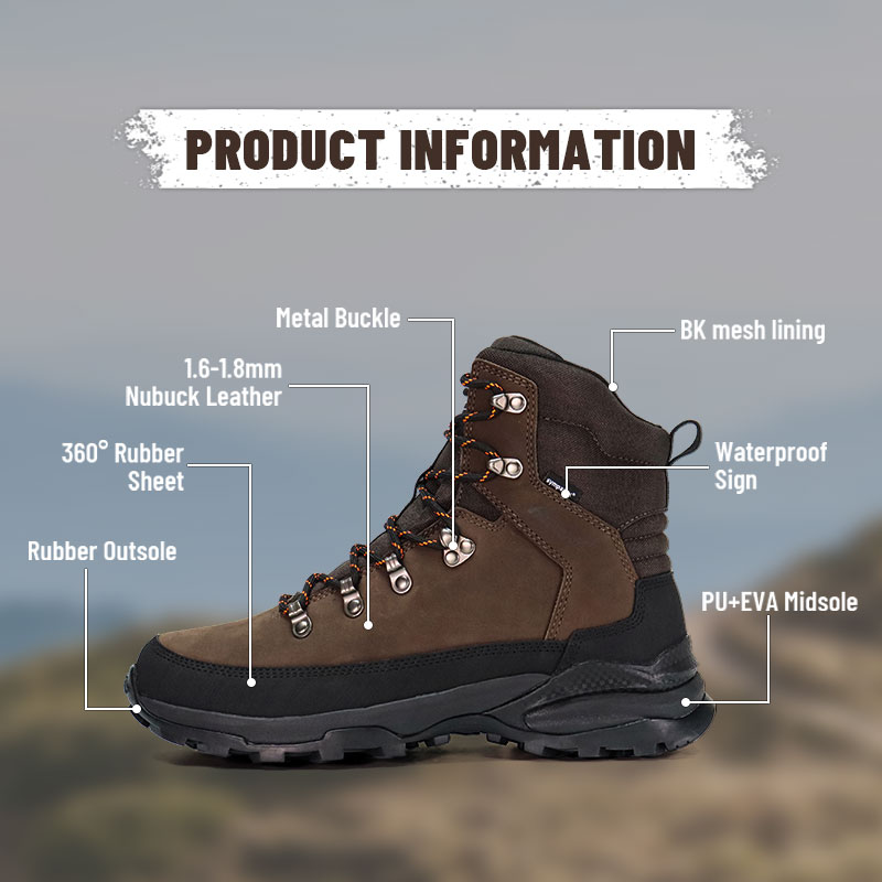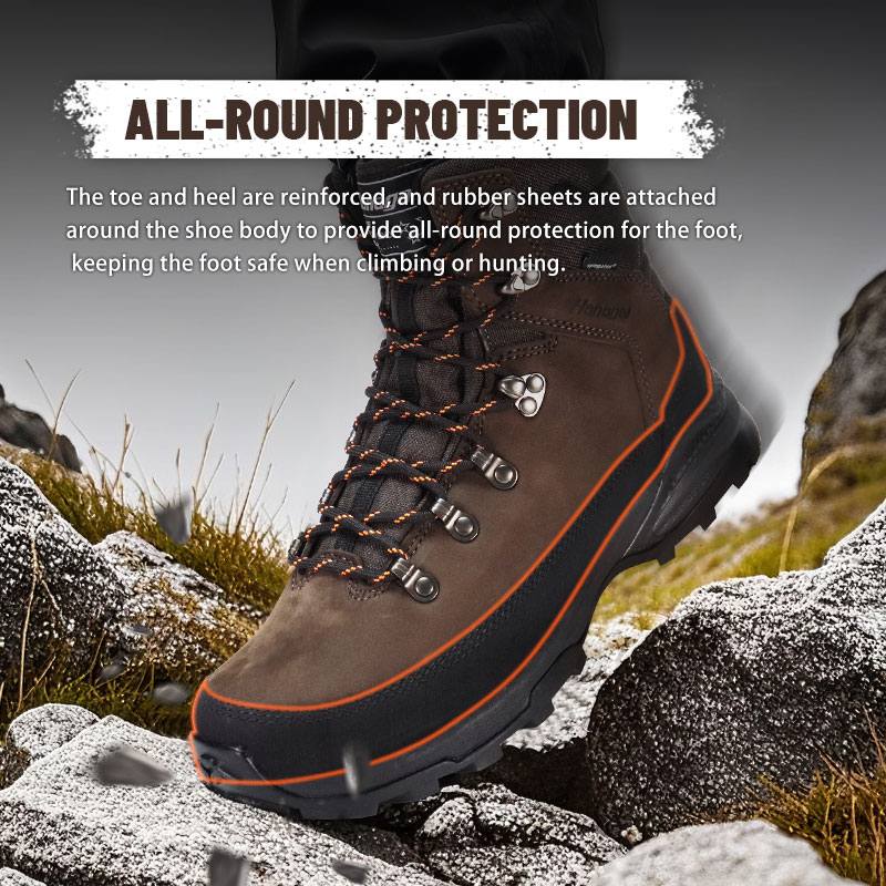 Varvas ja kantapää on vahvistettu, ja kumilakanat on kiinnitetty kengän rungon ympärille suojaamaan jalkaa kaikinpuolin ja pitämään jalan turvassa kiipeilyn tai metsästyksen aikana.