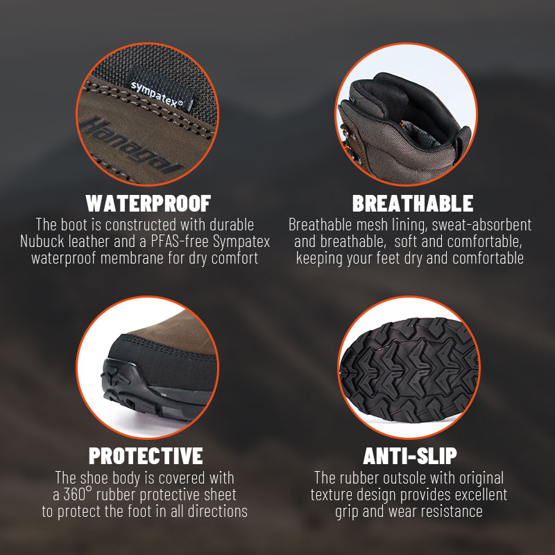 Nubukkinahka sitkeyttä varten. PFAS-vapaa Sympatex vedenpitävä hengittävyys. Yhdessä ne tarjoavat kuivaa mukavuutta, josta voit tuntea olosi hyväksi.